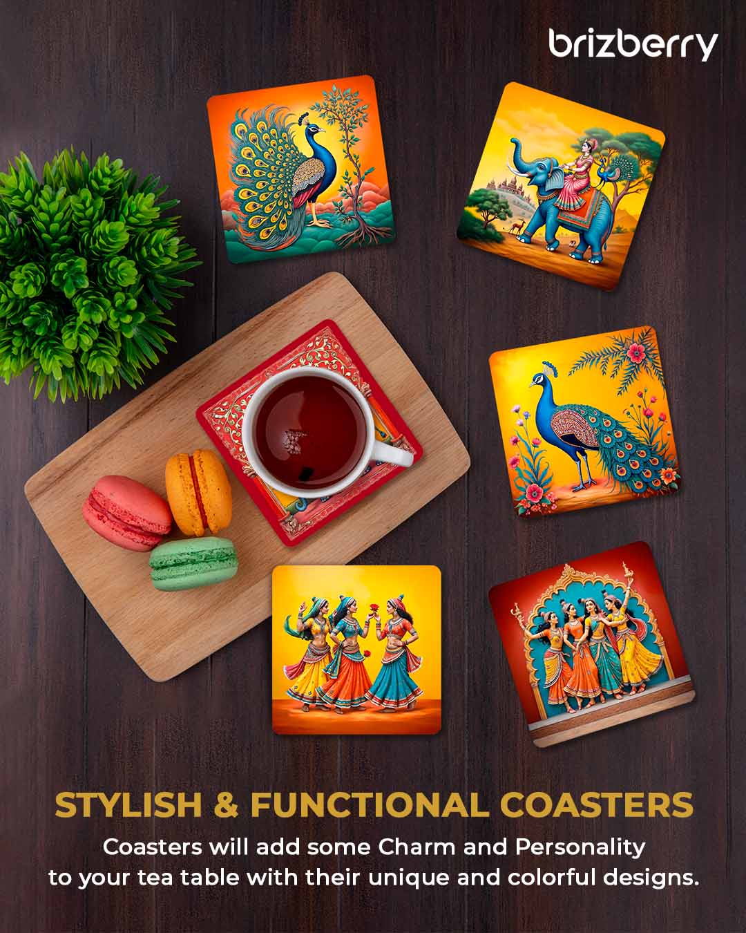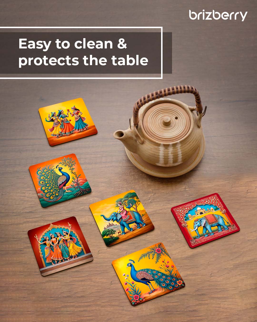 PERMANENT HD PRINTING : These Coasters are Printed on MDF Wood with Korean Inks using Heat Transfer Process. This Makes your Coasters look Vibrant and Cool Looking.